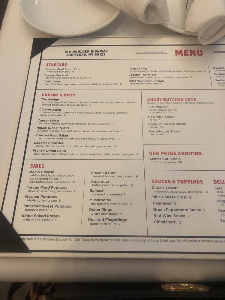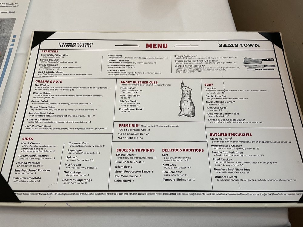 Welcome to The Angry Butcher Steakhouse, a culinary treasure tucked away in Sam's Town Casino on Boulder Hwy, Las Vegas. Renowned for its impressive variety of steak cuts, this venue features succulent selections like the Filet Mignon, Rib Eye, New York Steak, and an impressive Porterhouse. Each dish is elevated with a range of delectable sauces—from Béarnaise to Chimichurri—crafted to enhance the rich flavors of the meats.